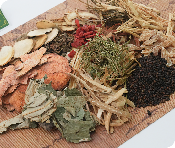 Hà diệp, giảo cổ lam, sơn tra, thảo quyết minh, đan sâm, ngưu tất, thổ phục linh, đẳng sâm, hoàng kỳ, chè xanh, diệp hạ châu...