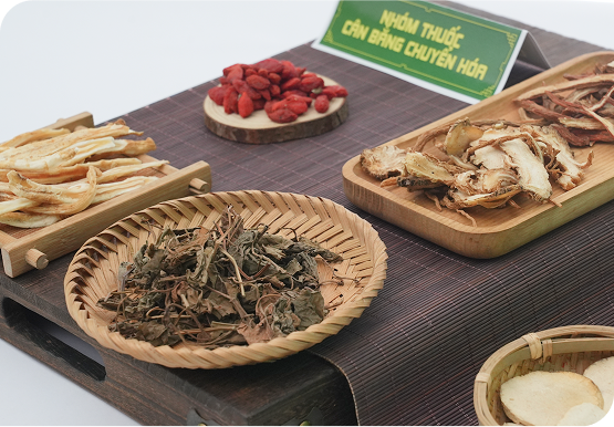 Đan sâm, tam thất, đẳng sâm, đương quy, liên diệp, trạch tả, khương hoàng, hoàng kỳ, atiso, nhân trần, cà gai leo,...