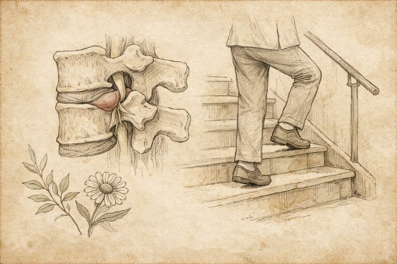 “Vọng – Văn – Vấn – Thiết, nhìn dáng đi biết gốc bệnh tại đâu.” – Khi bà con bước vào cửa, lão quan sát kỹ lắm. Người thoát vị đĩa đệm thường đi hơi đổ người về trước, bước chân không vững. Qua tứ chẩn, lão thấy đa phần bà con đều rơi vào thể khí trệ huyết ứ, kinh lạc bị phong hàn thấp tà bủa vây làm cho khí huyết không thông, dẫn đến gân cốt yếu nhược. Cái đĩa đệm vốn dĩ cần được nuôi dưỡng bởi huyết dịch, nay mạch máu tắc nghẽn, nó khô héo và dễ tổn thương hơn bao giờ hết. Bởi vậy, mỗi bước leo cầu thang là một lần thử thách lực chịu đựng của cột sống.